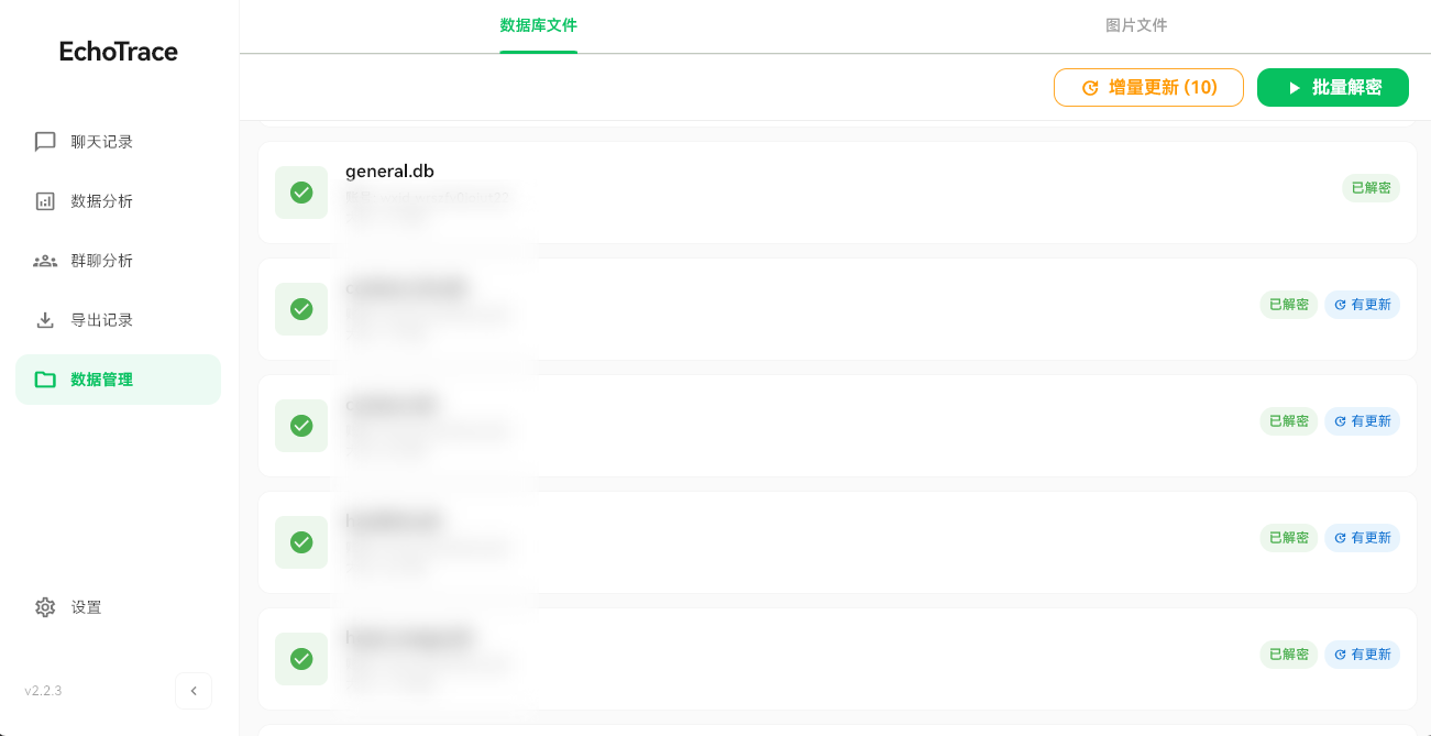 EchoTrace 是一个完全本地的微信聊天记录导出、分析与年度报告生成工具。它可以解密你的微信聊天记录并保存在本地离线查看,也可以将其导出为HTML等与朋友分享,还可以根据你的聊天记录为你生成独一无二的分析报告❤️